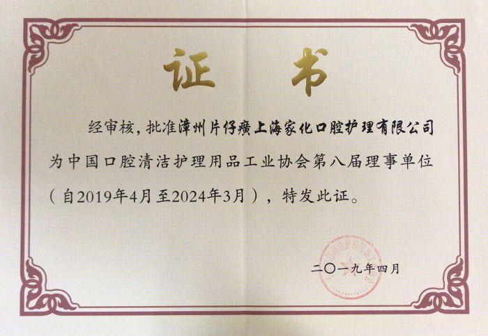 近日,中國口腔清潔護(hù)理用品工業(yè)協(xié)會(國家民政部注冊的該行業(yè)唯一的國家級協(xié)會),授予漳州片仔癀上海家化口腔護(hù)理有限公司“中國口腔清潔護(hù)理用品工業(yè)協(xié)會第八屆理事單位”的榮譽(yù)稱號。這一稱號,無疑是對片仔癀牙膏在口腔護(hù)理領(lǐng)域取得成績的積極肯定。