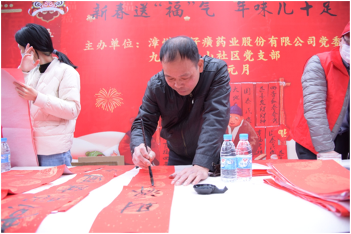 寫春聯、貼福字、貼窗花是中華民族歡度春節(jié)的傳統(tǒng)習俗,象征著吉祥如意,更表達了人們對來年事事順遂的美好愿景。為進一步弘揚中華優(yōu)秀傳統(tǒng)文化,營造歡樂祥和的節(jié)日氛圍,弘揚向上向善的道德風尚,2022年1月18日上午,片仔癀公司黨委以近鄰黨建為引領,攜手九湖鎮(zhèn)南山社區(qū)黨支部在南星小區(qū)舉辦“墨香四溢迎新春 情暖社區(qū)贈春聯”活動,邀請公司職工、職工子女及社區(qū)書法愛好者現場寫春聯,為即將到來的2022年春節(jié)增添年味。